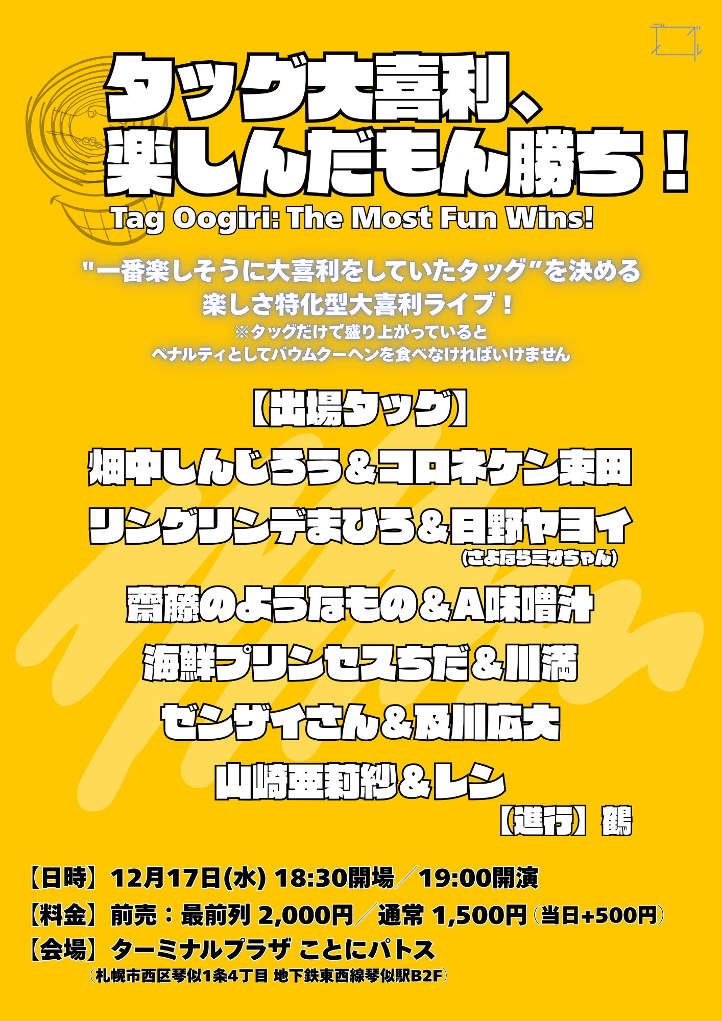 “一番楽しそうに大喜利をしていたタッグ“を決める楽しさ特化型大喜利ライブ!